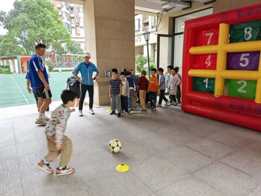 美育与智育的融合则让班班赛更具内涵与温度。闵行实小景城校区将“投壶”“滚铁环”等传统民间游戏纳入赛事体系,学生在操控铁环、瞄准箭壶的过程中,感受传统游戏的美学韵味与古人的礼仪智慧;惠南小学“惠乐杯”联赛中,学生自主设计赛事徽章、加油海报,将足球元素与校徽特色、班级文化相结合,让赛事成为校园美育的鲜活实践;畹町校区创新推出“智慧设备挑战月”,将运动与科技深度融合,学生在智慧屏前完成跳跃、奔跑等打卡任务,通过实时数据反馈探究身体机能,让体育成为启迪智慧的“活教材”。