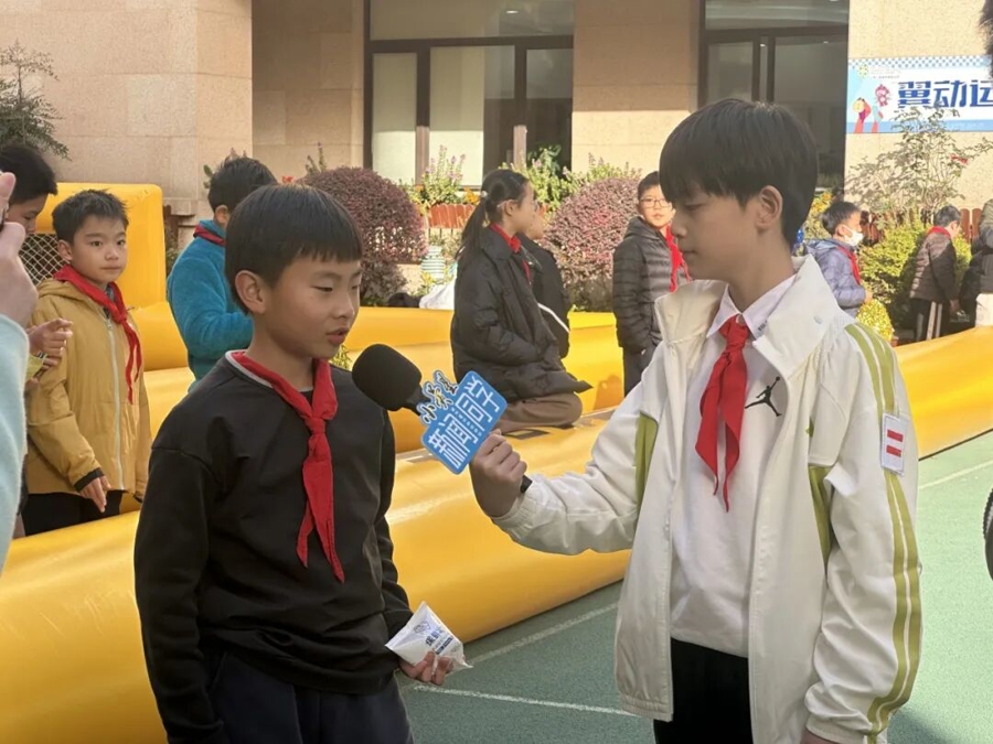 上外黄浦外国语小学的“翼起足球”班班赛则展现了别样的创新路径:一年级学生先参与足球体验课培养兴趣,二至五年级通过抽签分组展开公平角逐,“翼动社”社员主动承担裁判、记录、摄影等服务工作。被小荧星小记者赛后采访时,小球员们脸上的疲惫瞬间被兴奋取代,一边比画着射门动作,一边激情地描述比赛过程,这份纯粹的热爱让校园体育更具温度。这种“参赛+服务”的双路径设计,让不会踢球的学生也能以“幕后英雄”的身份深度参与赛事全过程,让班班赛真正成为覆盖全员的校园盛会。
