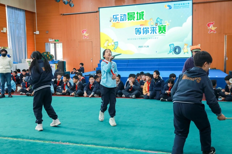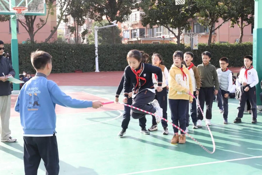 在闵行区实验小学,“全员参与”的理念被演绎得淋漓尽致。学校11月“乐动比赛日”实现四校区7000余名学子无一缺席:莘松校区的跳绳比赛从一年级“极速30秒”到五年级“长绳8字跳”,按年龄设计梯度化项目;春城校区的“球球赛”设置“蒙娃赶球”“定点射门”等基础任务,让低年级学生轻松参与;景城校区的“投壶”“滚铁环”与畹町校区的“拍球接力”,更让运动摆脱了“竞技门槛”,确保每个孩子都能找到适配自己的参与方式。