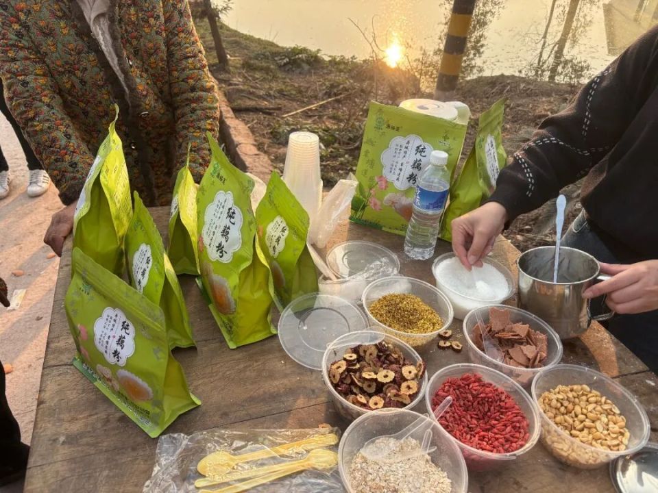 广西一家藕粉厂家也在现场免费分发烫熟的藕粉。其称,自己13日抵达,带来的藕粉主要是在线上售卖,来现场也想为自家藕粉做宣传。目前藕粉已做了几百份。