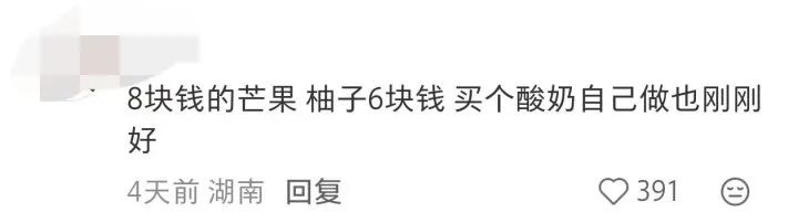 也有网友算了一笔账:“一整个凯特芒果约20元,一个柚子约10元,加上酸奶成本约5元,自制一份同款甜品成本远低于市售价格。”